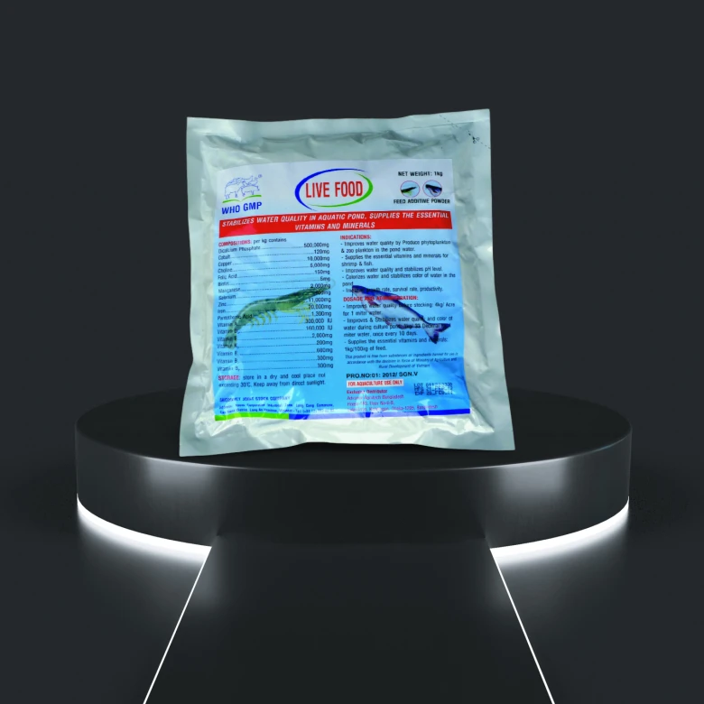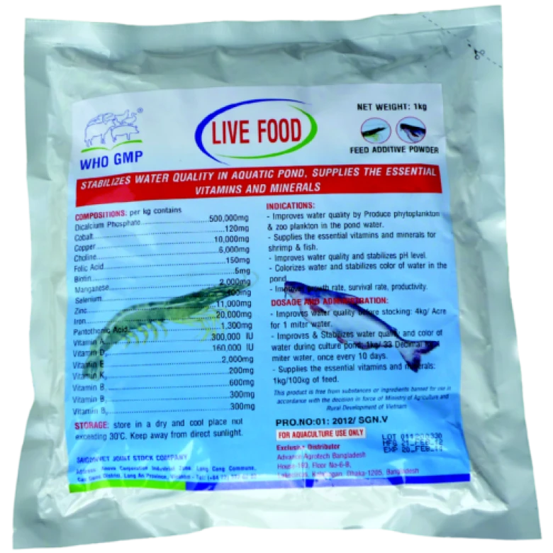 (মাছ ও চিংড়ির পুকুরে পানির গুনাগুন রক্ষায় ও প্রাকৃতিক খাদ্য উৎপাদনে ভিটামিন ও মিনারেলস্—এর সরবরাহ)